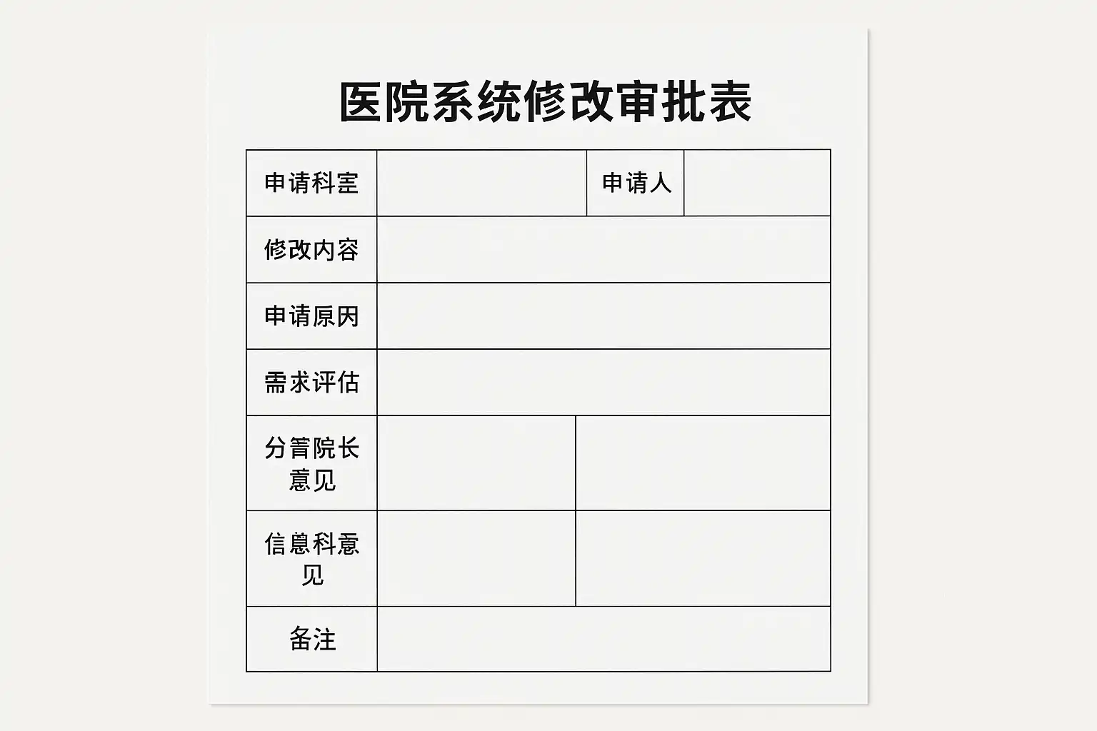 为确保审批表修改流程高效、合规,医院系统通常采用以下管理措施: