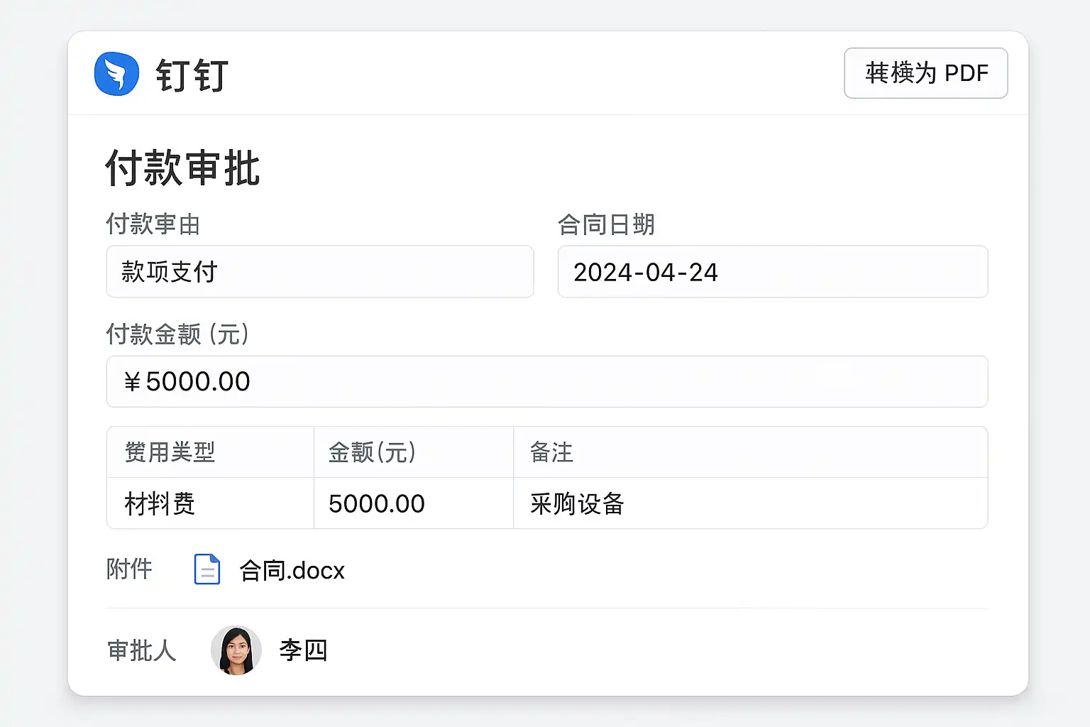 钉钉系统付款审批转换成PDF方法详解,如何快速导出审批单?
