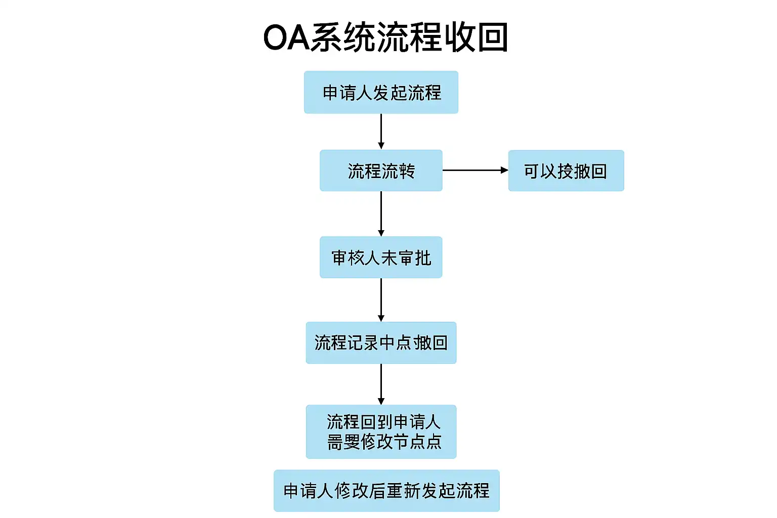 | 系统设置不支持收回 | 联系OA系统管理员调整流程设置 |