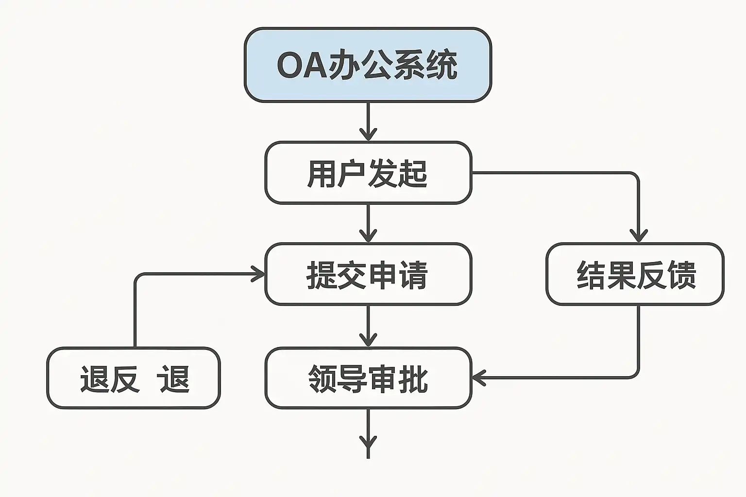 - 流程发起:员工通过OA系统提交流程申请(如请假、报销、用章等)。