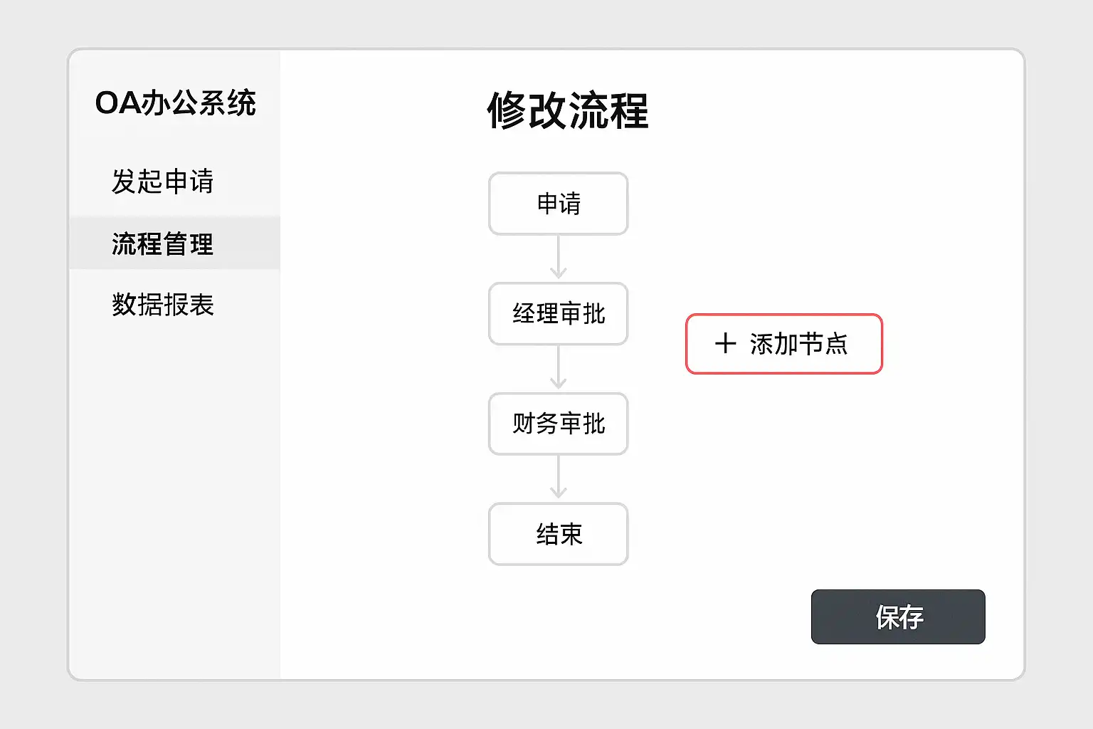 OA流程修改依赖于系统平台的流程设计能力。传统OA系统多需技术开发支持,而简道云等零代码OA办公平台提供了可视化流程设计工具,极大降低了流程修改难度。