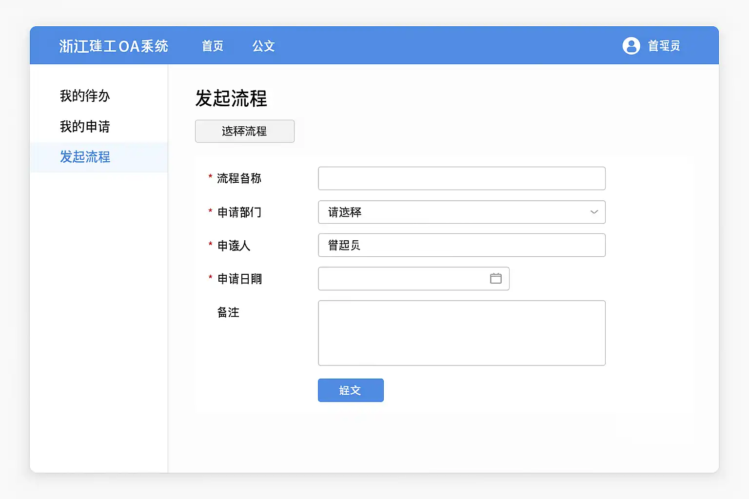 浙江建工OA系统发起流程时常见错误包括: