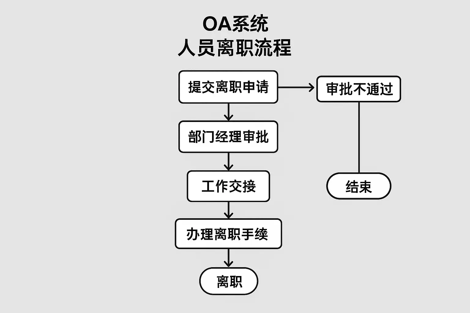 | 提交申请 | 员工在OA系统填写离职申请 | 系统自动生成流程单据 |