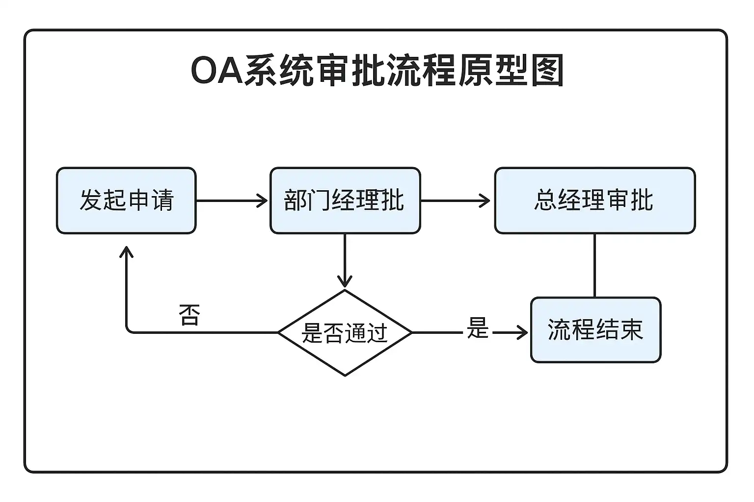 OA系统(Office Automation System)审批流程原型图,是将企业内部各类审批业务逻辑以可视化方式展现的工具。它不仅帮助开发、业务和管理团队实现沟通协作,更是企业制度规范化、高效化的重要支撑。一个合理的流程原型图能清晰展现各节点责任、流转规则以及异常处理方式,是OA系统定制开发与优化升级的起点。