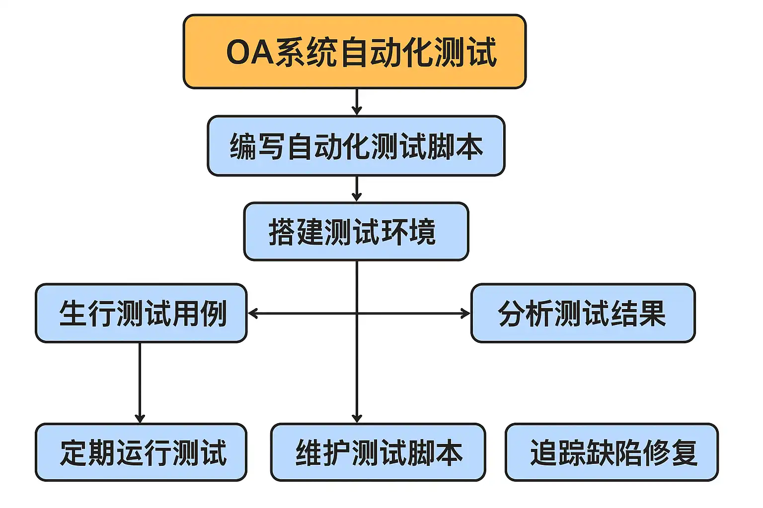 - 回归测试:每次OA迭代上线前自动跑全量脚本,保证核心流程无回归缺陷。