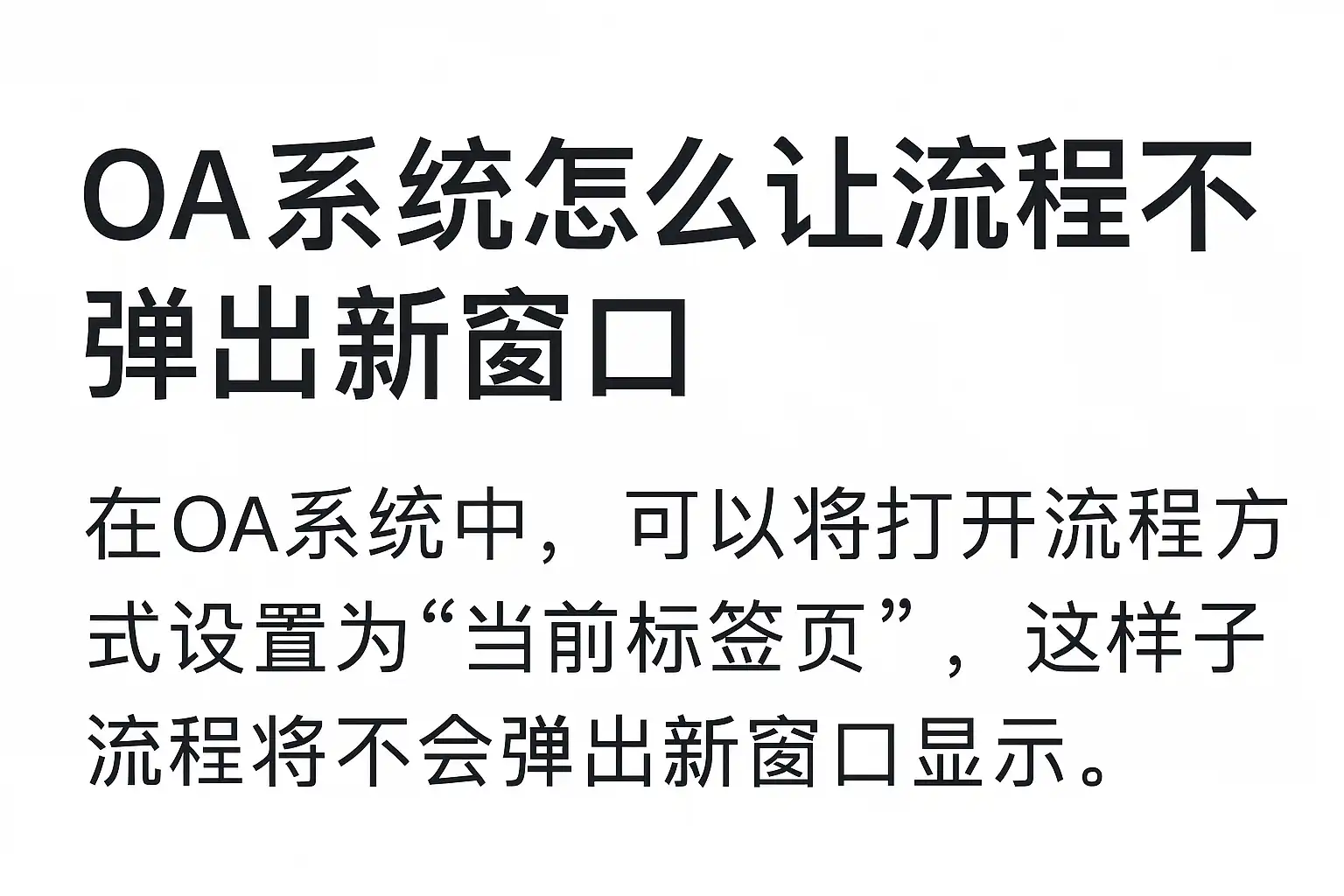 OA(办公自动化)系统在日常使用中,常见的一种交互模式是操作流程时自动弹出新窗口。虽然这种方式有其历史渊源和技术原因,但随着企业对用户体验的要求提升,这种做法逐渐暴露出诸多弊端。
