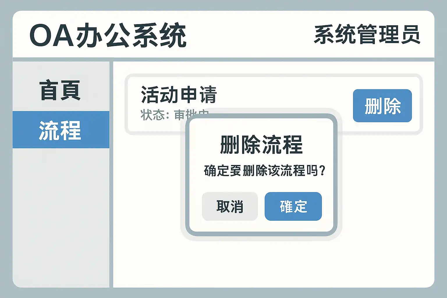 5、执行删除操作 在流程列表或详情页点击“删除”按钮,系统通常会弹出提示框,警告删除后无法恢复。部分OA系统支持批量删除,但建议逐条操作以防误删。