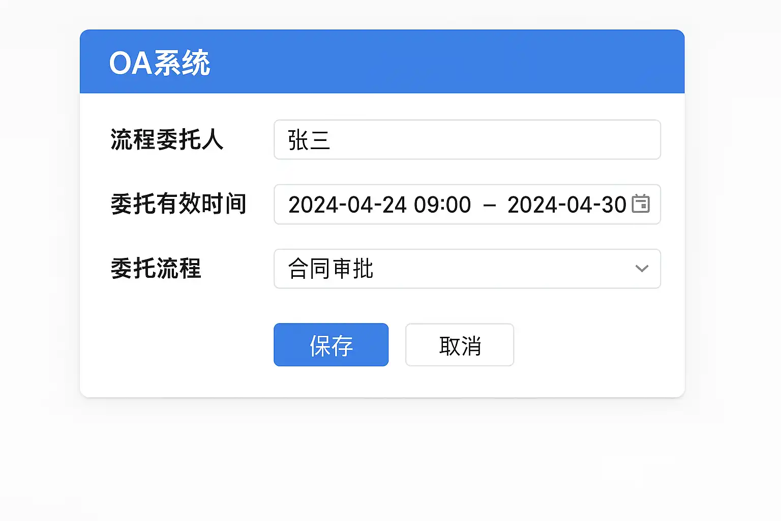 流程委托是指在OA办公系统中,流程发起人或某节点审批人因故无法处理业务时,将流程审批权临时转交给他人。其核心意义包括: