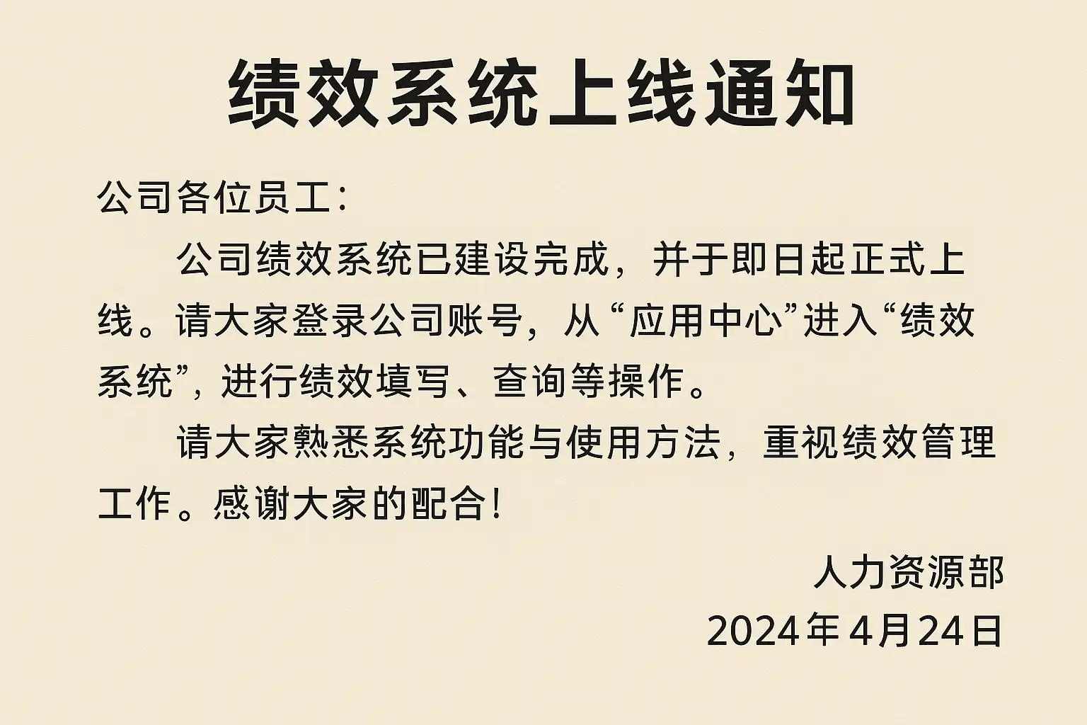 绩效系统上线通知怎么写?最佳范文与注意事项详解