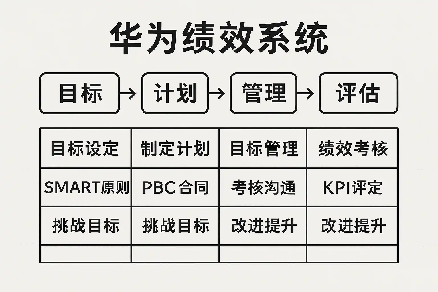- 华为自主开发绩效考核信息系统,实现考核全流程数字化、自动化管理。