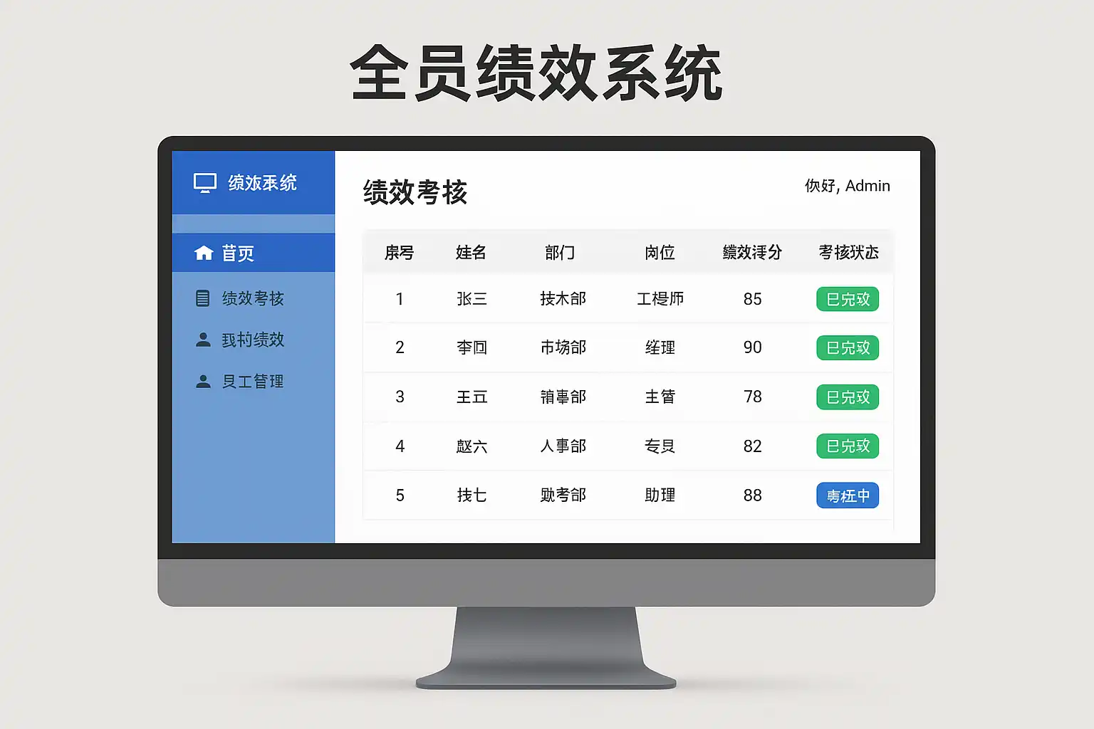 | 结果分析报表 | 绩效得分统计、排名、趋势分析 |