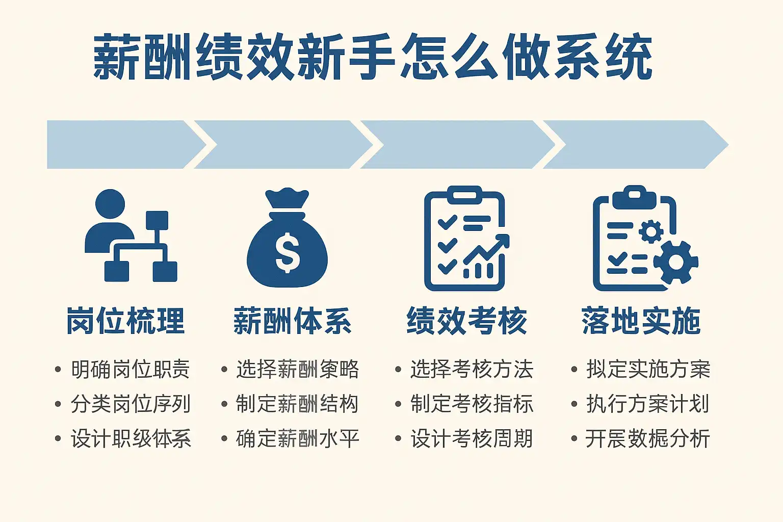 使用系统前,需理清企业薪酬绩效管理的主要流程及目标。流程梳理不仅有助于系统设置,还可以提升整体管理效率。典型流程如下: