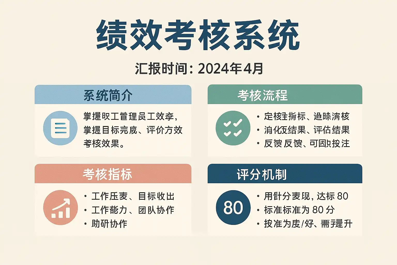 以下为一个简化版的绩效考核系统简报示例及内容模板,便于实际操作时参考: