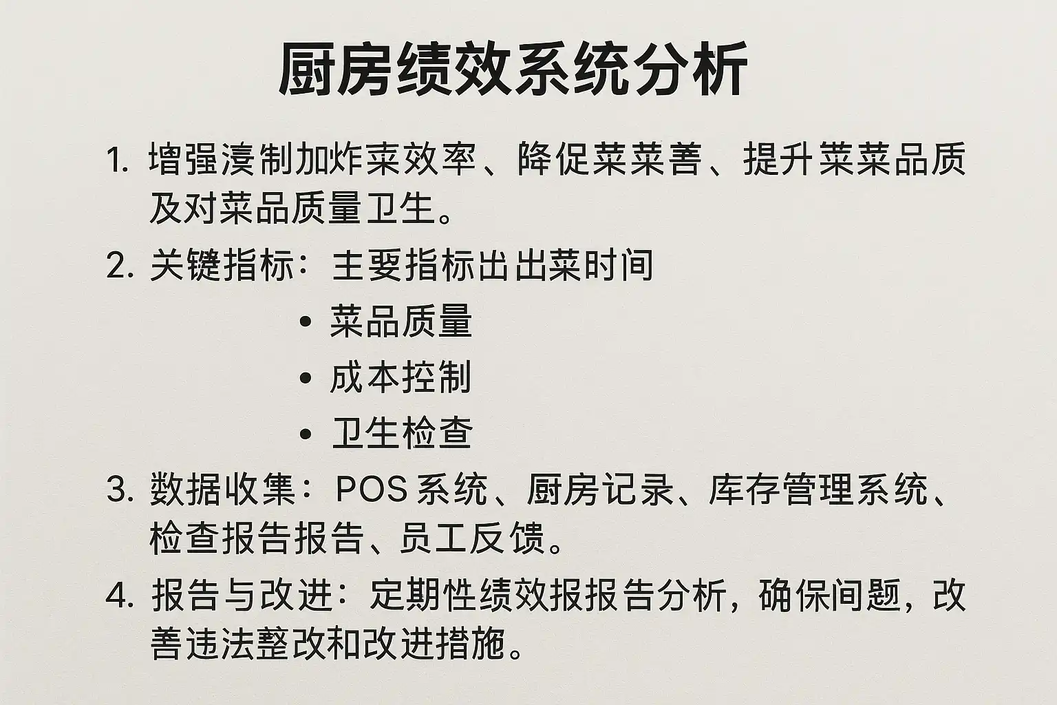 厨房作为劳动密集型、流程复杂的运营场所,科学的绩效系统分析是提升管理水平与市场竞争力的关键。