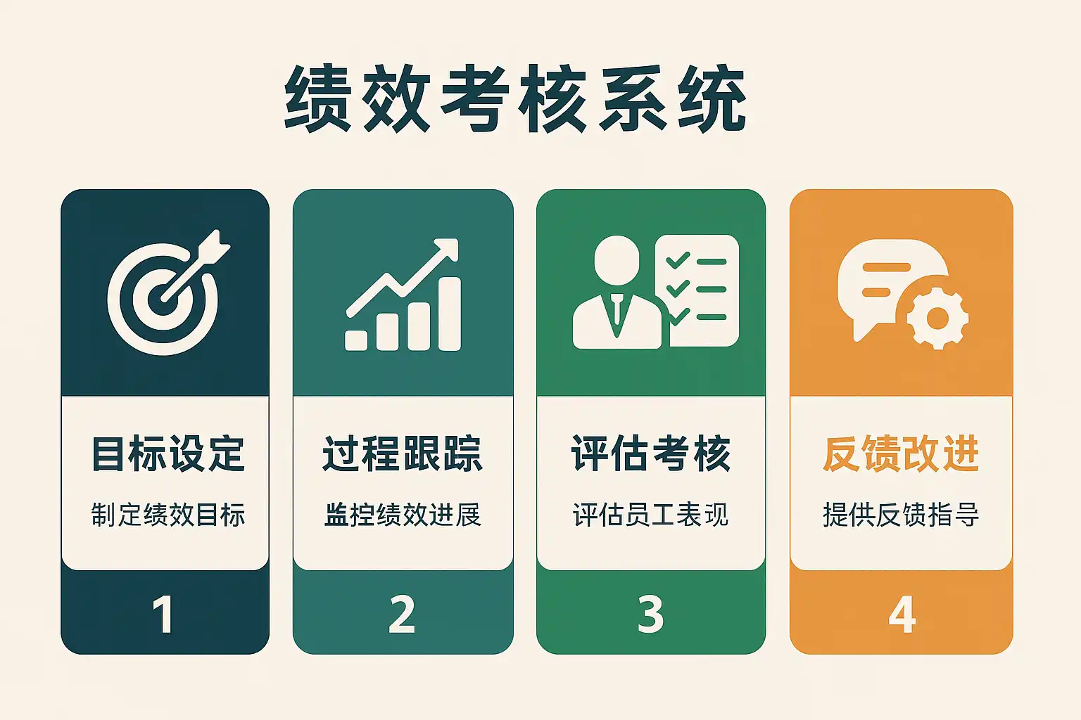 | 2 | 流程管理 | 制定考核周期、评分流程与反馈机制,确保过程标准化、透明化 |
