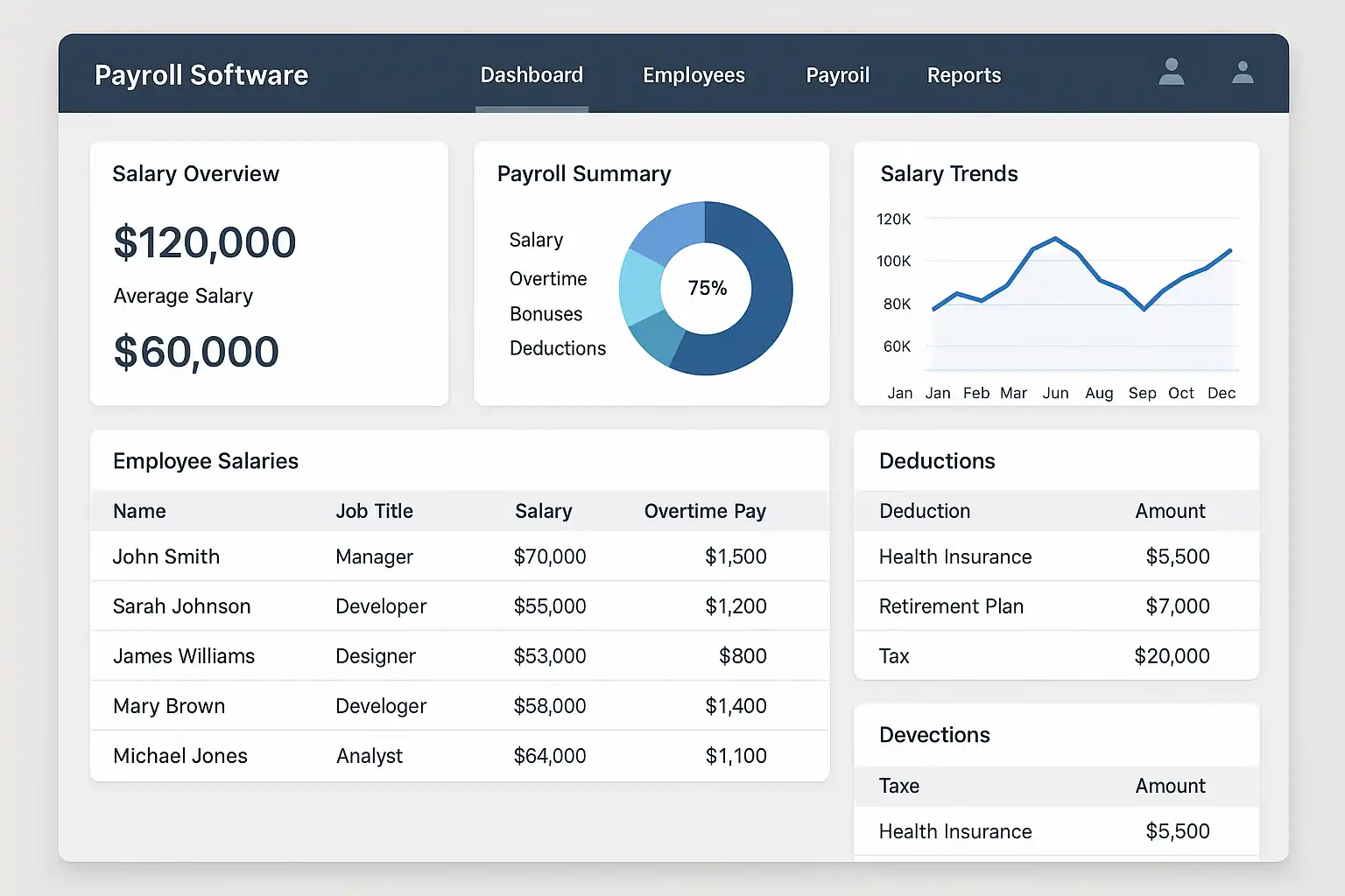 - 自动生成报表:系统自动生成工资单和税务报表,提升工作效率。