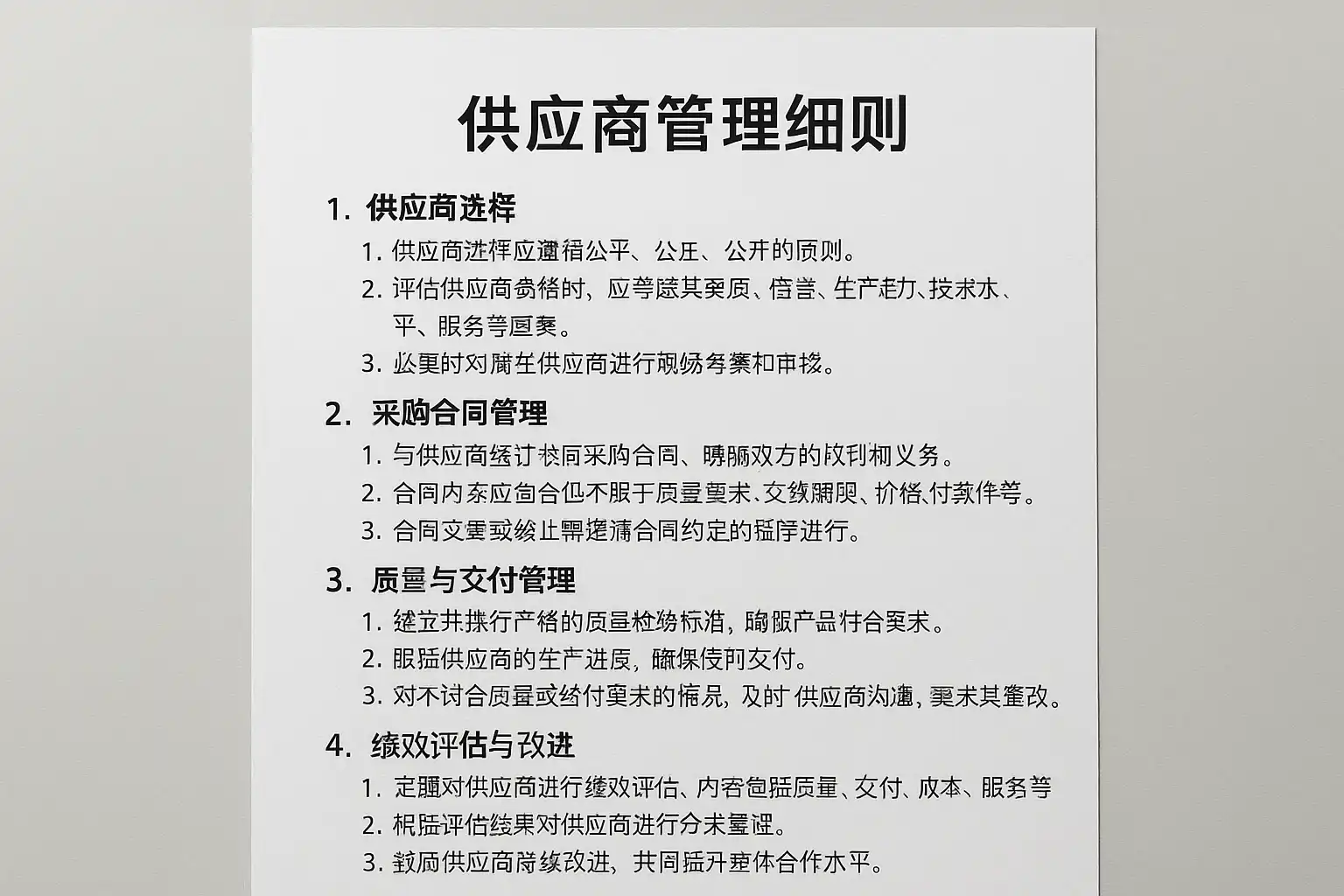 细则结构应简明且全面,确保每个环节有据可依、责任到人,支持企业持续优化供应商管理。