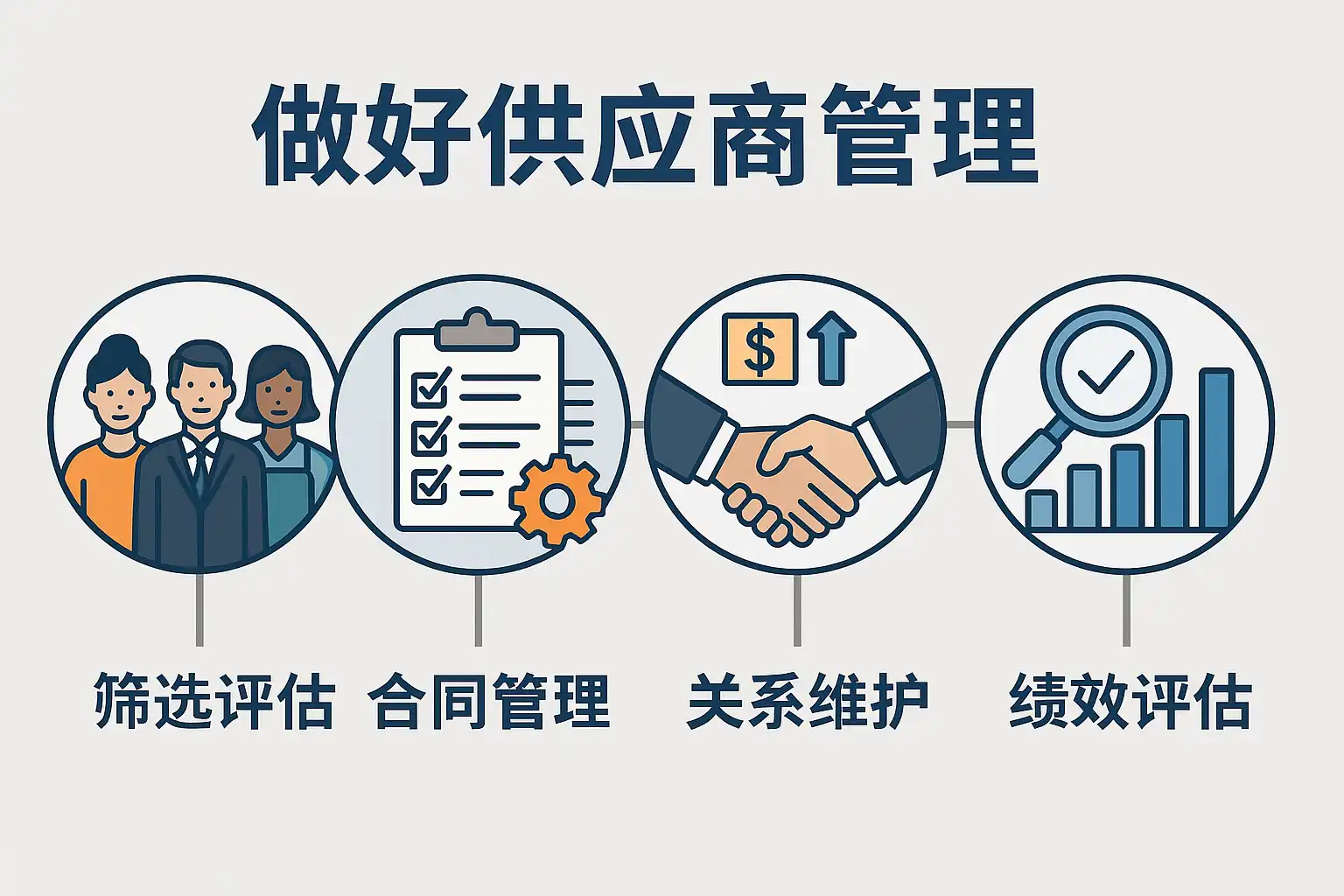 - 定期评估和优化供应商管理流程,结合绩效数据持续改进。