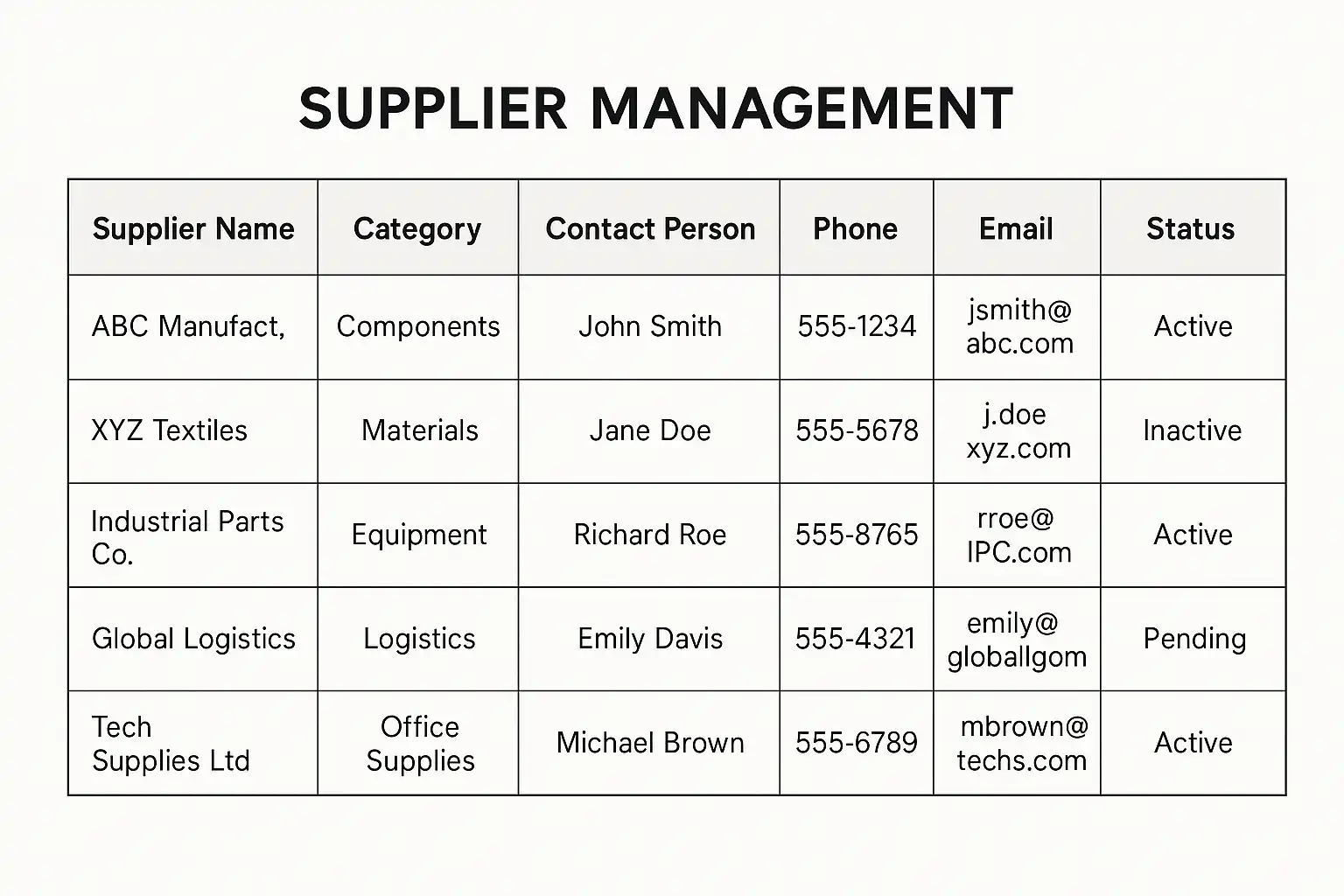 - 分类分级:根据供应商类型和重要性分组,便于筛选和分析。