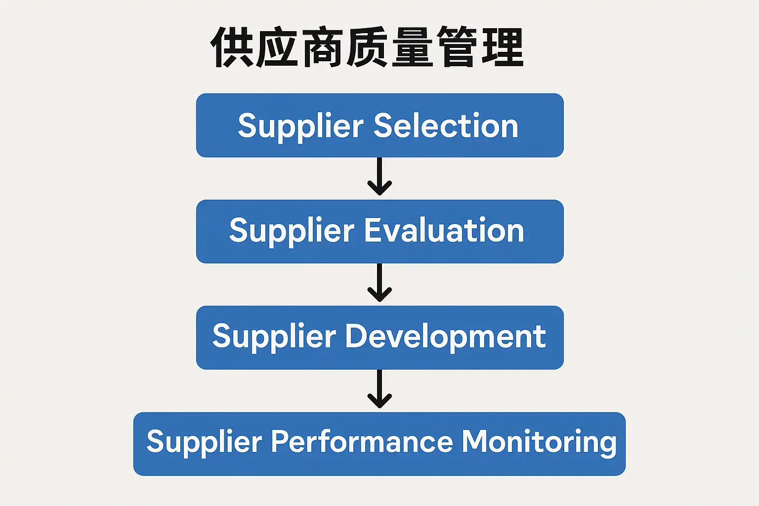 | 持续改进动力不足 | 设立激励机制,推动供应商积极参与质量提升 |
