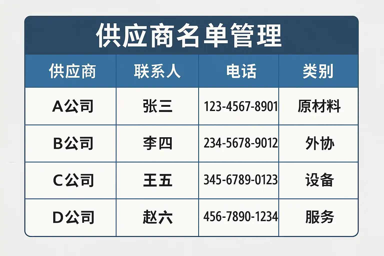 案例说明:某制造企业通过实施分类管理和ERP工具,供应商信息检索效率提升了40%,供应链风险降低了25%。