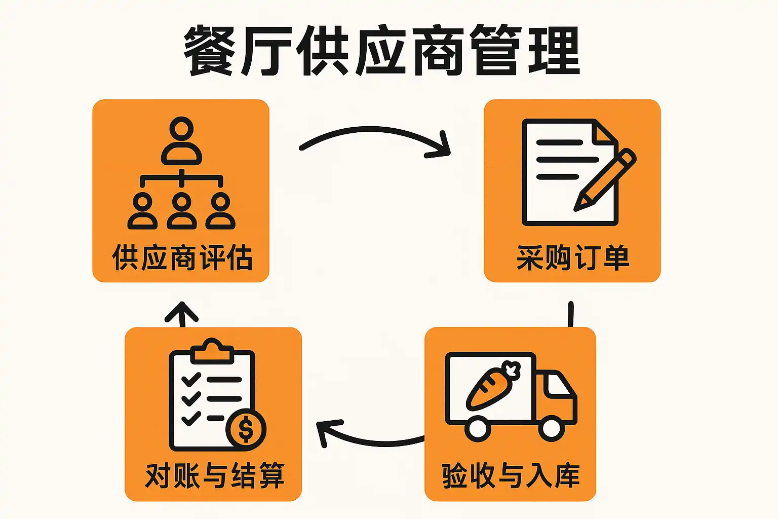 通过科学的供应商管理,可以从以下几个方面降低餐厅采购成本: