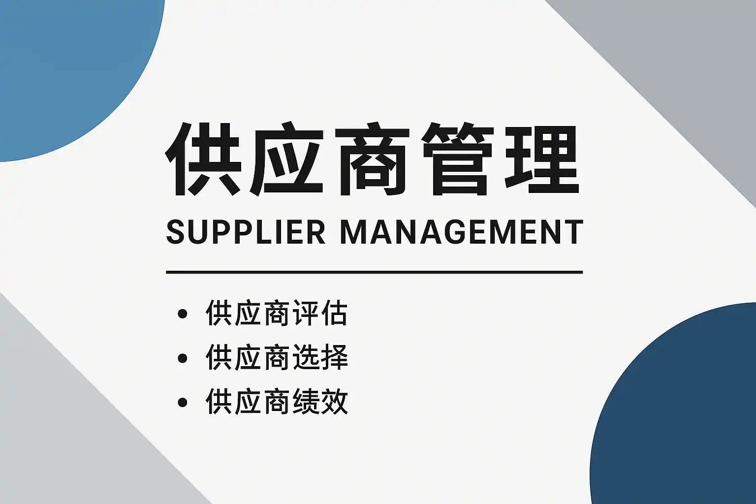 | 年度总结 | 汇报全年供应商管理绩效 | 现状分析-问题归纳-改进措施-展望 |