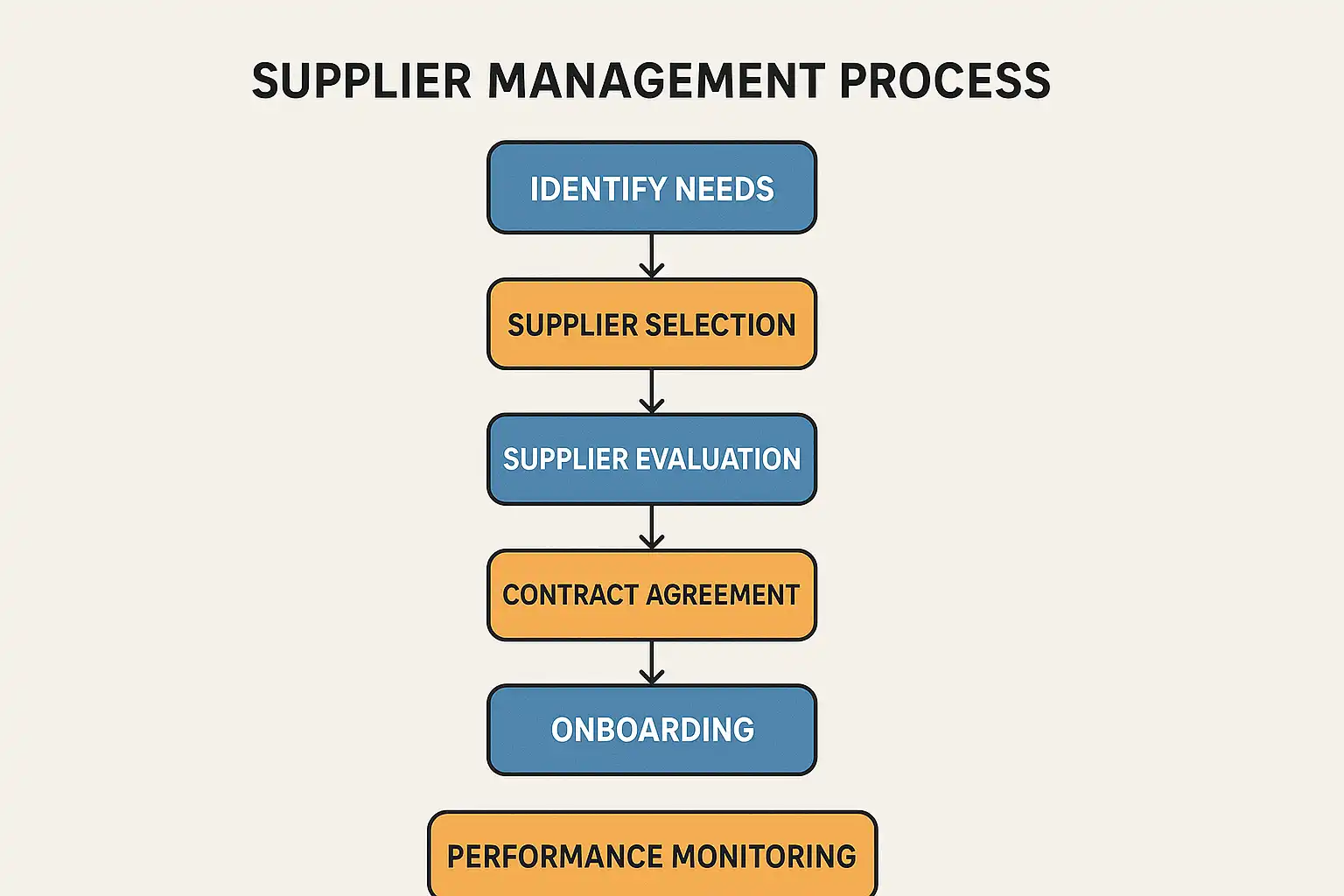 案例说明:某制造企业通过梳理采购、资格审查、订单管理、验收付款四大流程节点,成功提升供应商响应速度30%。