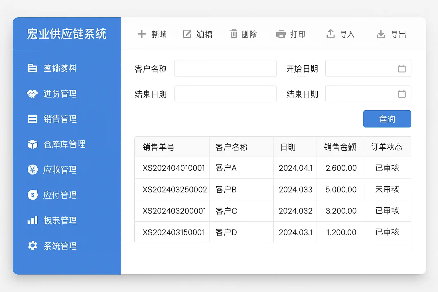 宏业供应链系统订单管理模块具备以下关键功能: