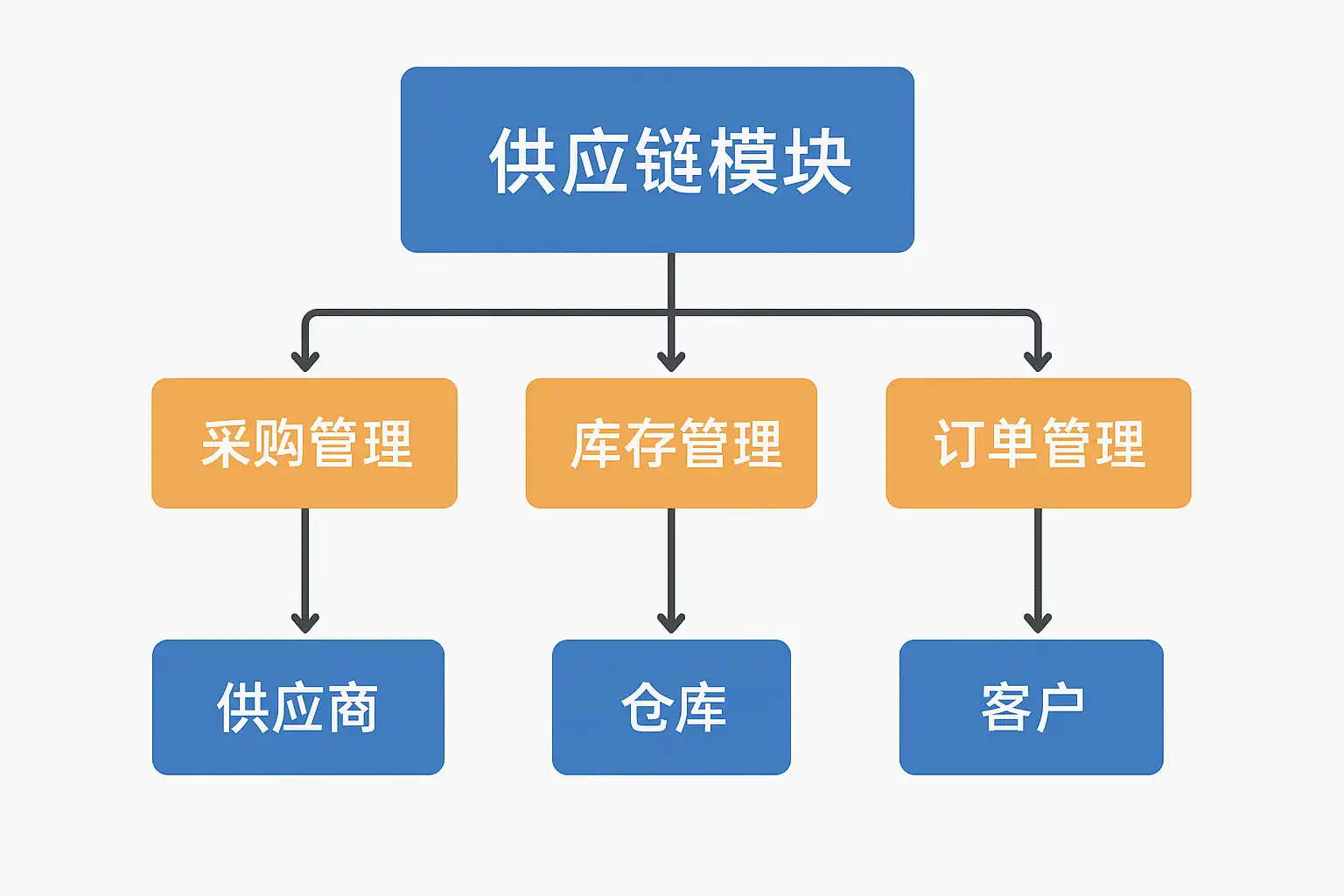 供应链模块系统图通常包括以下关键组成部分: