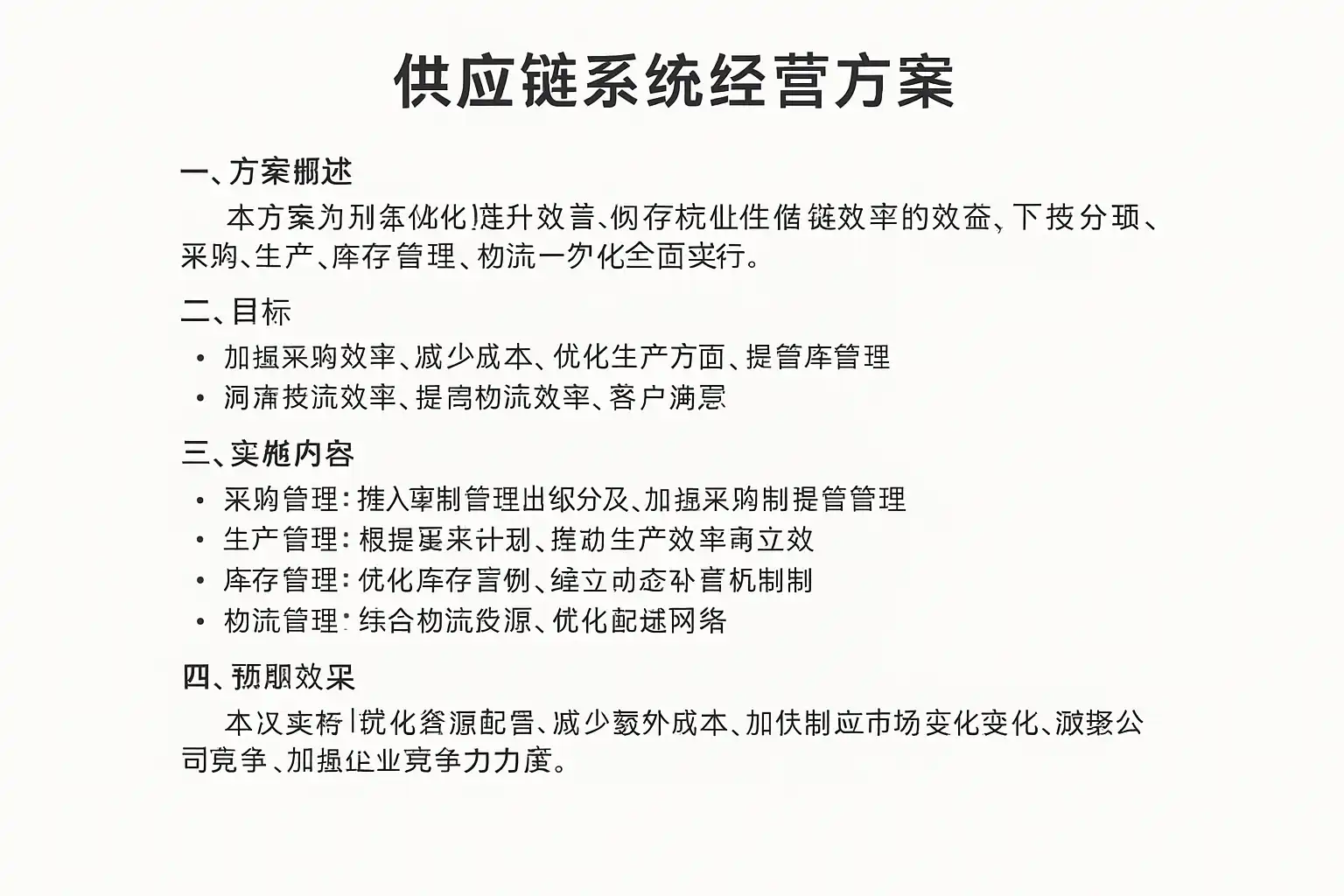 撰写供应链系统经营方案时,建议采用结构化文档模板,确保内容全面、逻辑清晰。