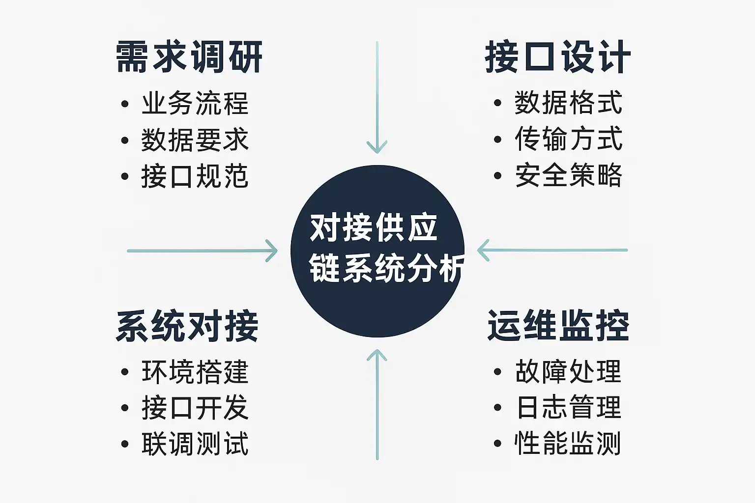 数据标准化与接口设计是供应链系统对接中的核心技术环节。只有实现数据格式统一和接口兼容,才能保障系统间的信息高效流转,避免“数据孤岛”与信息丢失。