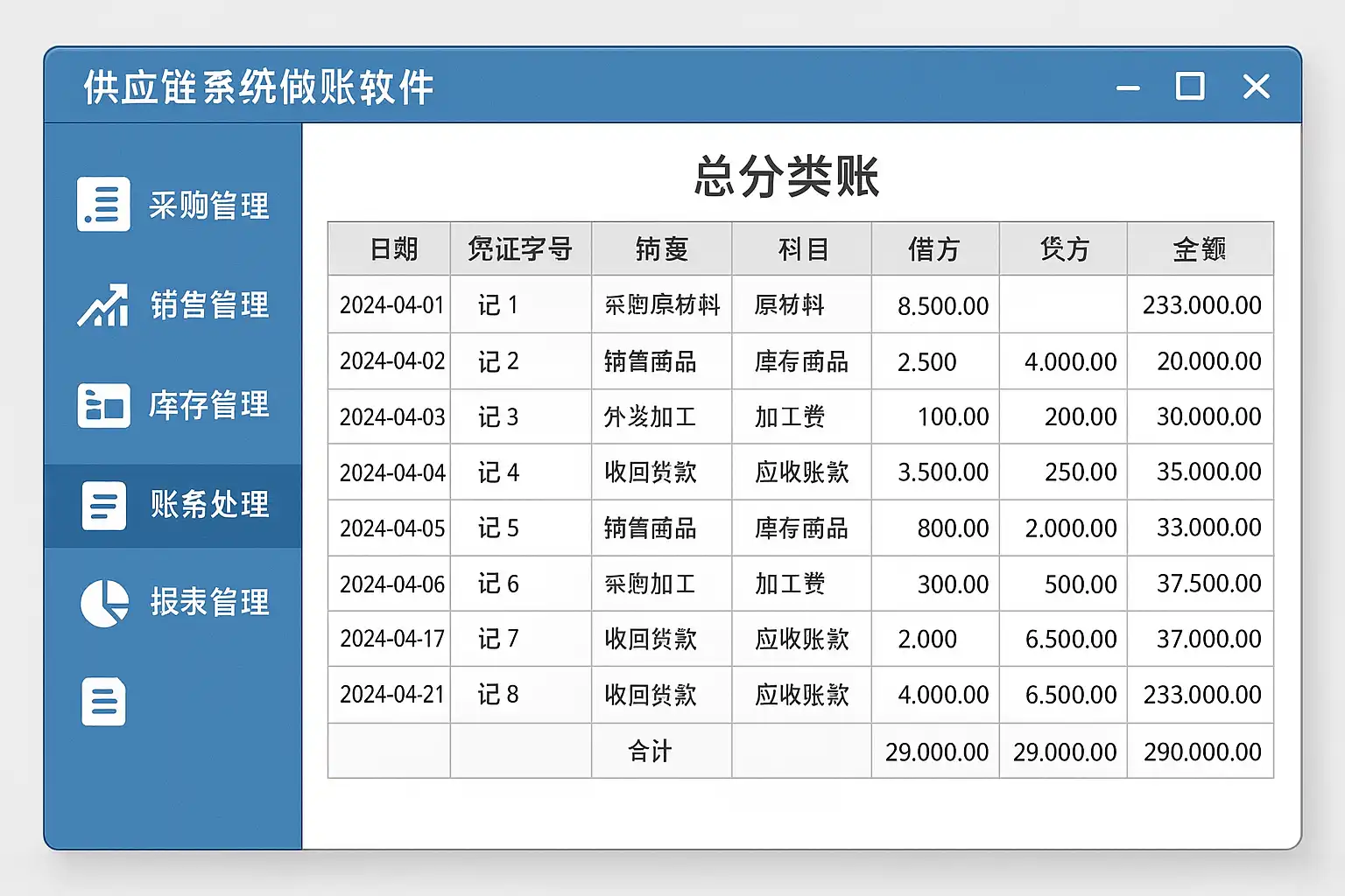 供应链系统做账软件通过自动化处理采购、库存和销售数据,显著提升财务管理效率。具体功能包括: