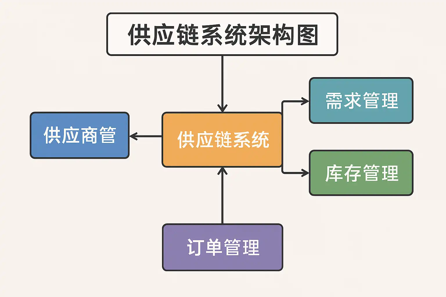通过图形化表示这些模块及其相互关系,能有效展示供应链系统的整体架构,提升系统设计的清晰度和协作效率。