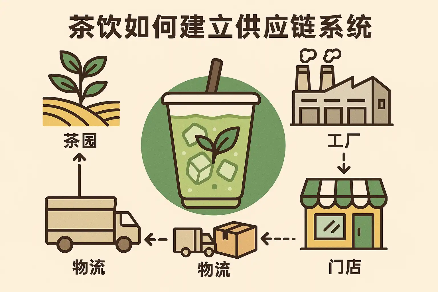茶饮供应链系统的建立首先要明确结构与各参与方的分工。典型的茶饮供应链包括以下环节: