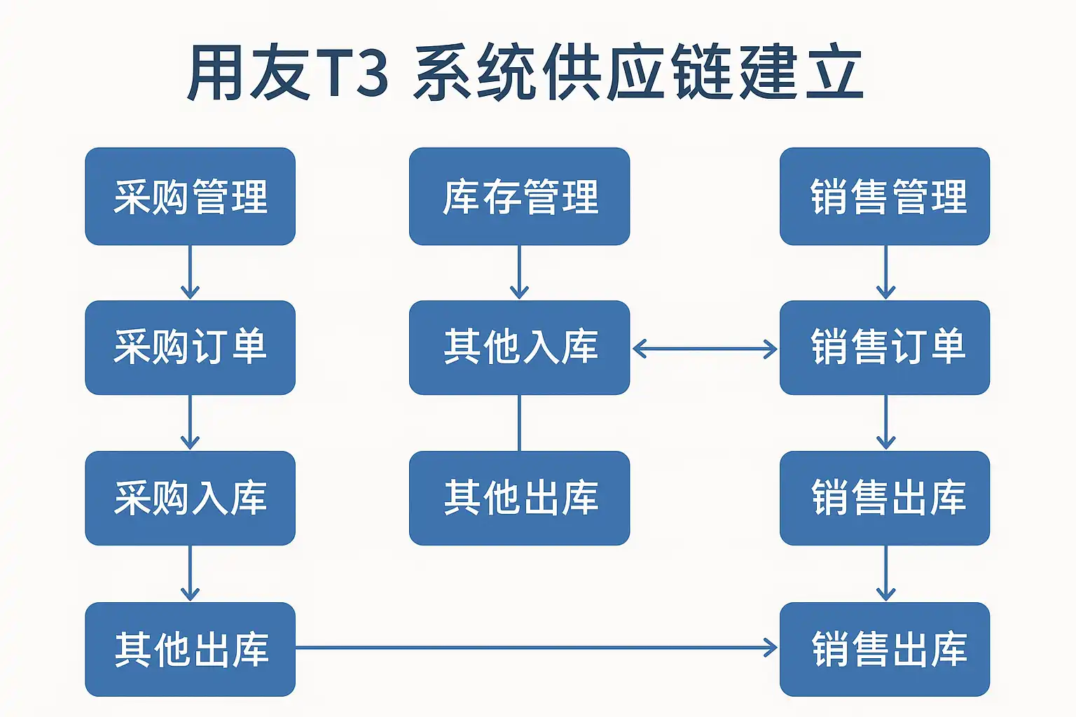 | 销售流程 | 销售订单—销售出库—销售收款 | 销售出库单自动生成销售发票,便于对账 |