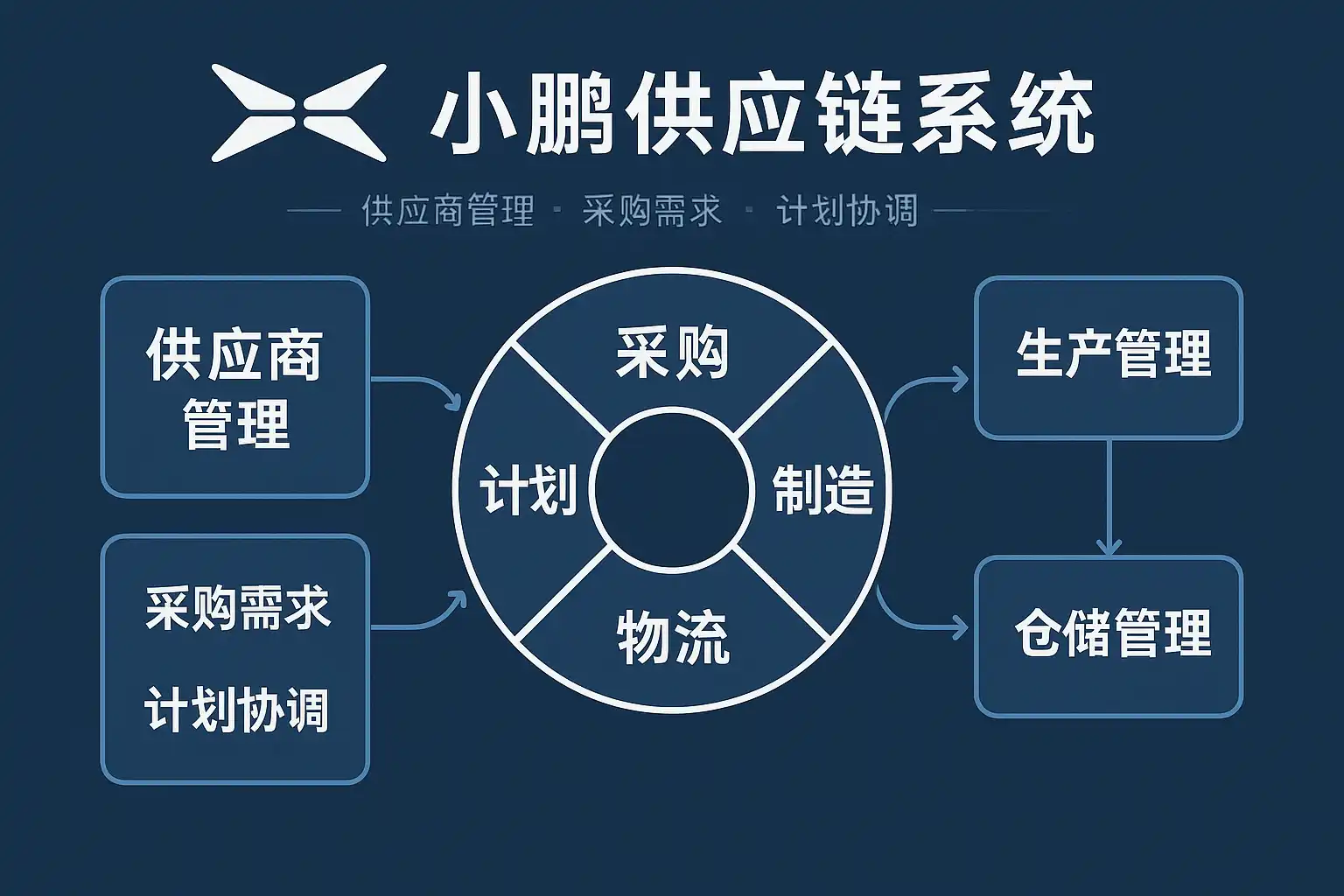 举例说明:在采购管理环节,小鹏供应链系统能够实现从需求申请、供应商比价、合同签署到订单执行的全流程线上操作,并自动触发相关审批流和数据同步,有效减少了手工操作和信息孤岛问题。