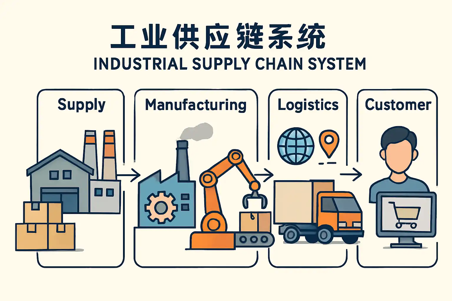 我在了解工业供应链系统时,发现它涉及多个环节,但具体包含哪些主要组成部分呢?这些部分是如何协同工作的?