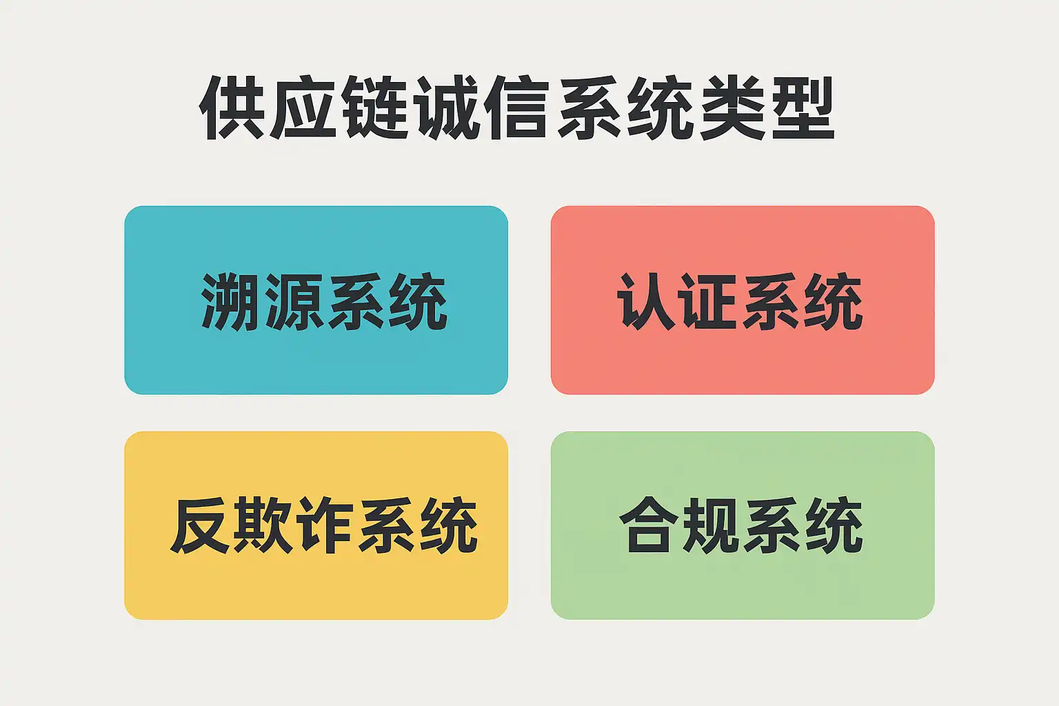 供应链诚信系统,旨在确保供应链各环节的信息真实、行为合规、合作伙伴信任。当前主流诚信系统类型包括: