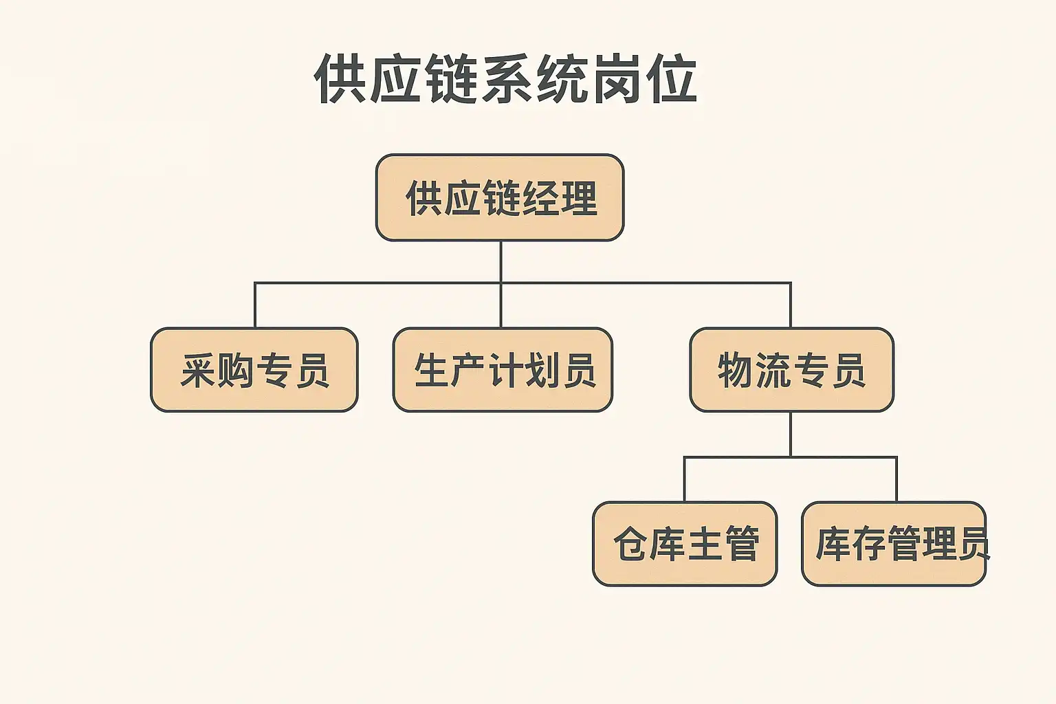 我对供应链系统的职位设置不太了解,想知道在供应链系统中主要有哪些岗位,这些岗位的职责是什么?能否帮我理清供应链系统的职位结构?