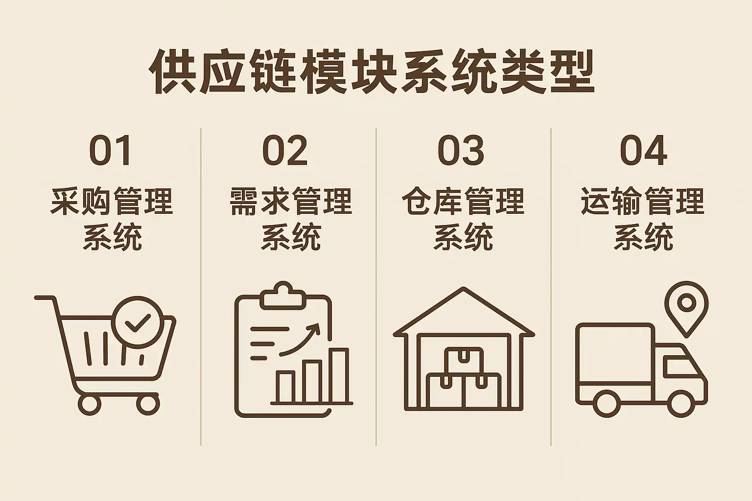 我在选择供应链模块系统时,发现市场上有很多不同类型的系统。具体都有哪些主要类型?它们各自适合什么样的企业?我想了解清楚,才能做出正确选择。