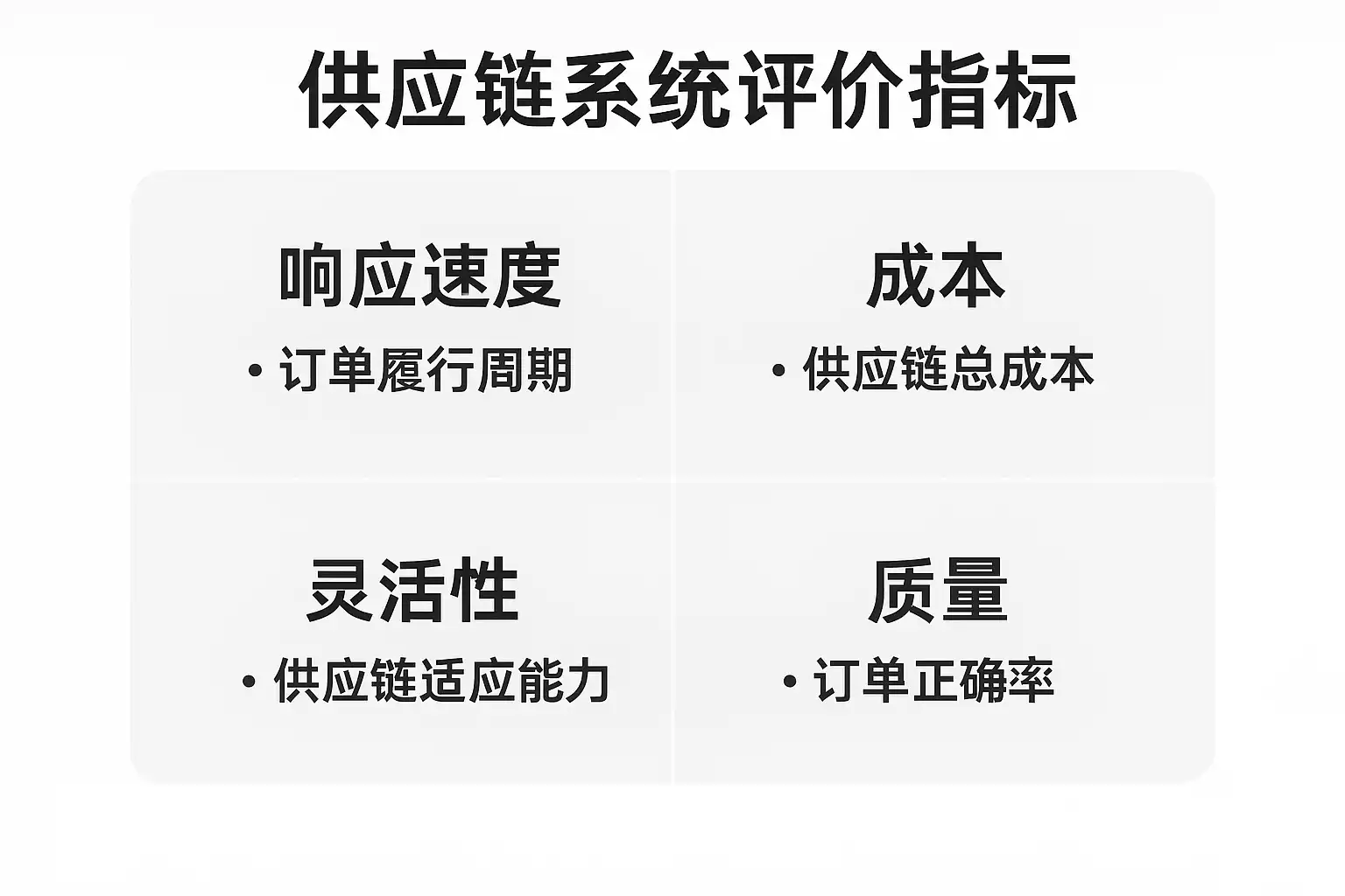 | 响应类 | 交货周期、应急响应 | 体现供应链对市场和客户需求的响应速度 |