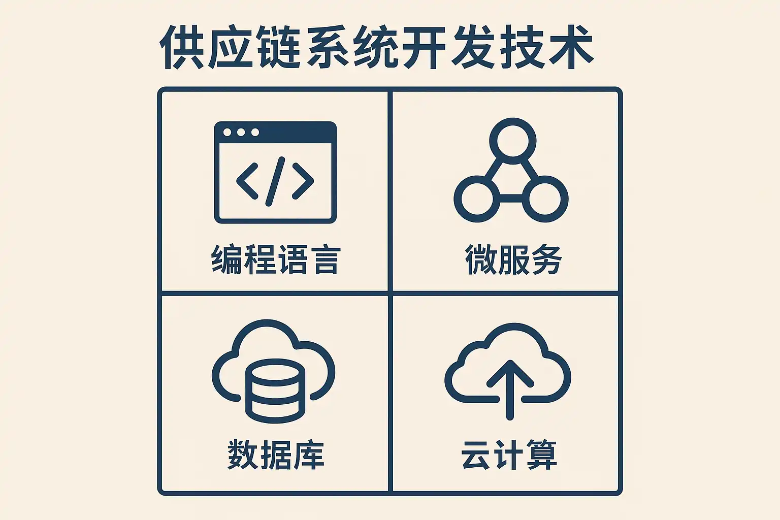 - 后端开发技术 后端是供应链系统的业务核心,选择依据系统规模、并发量和企业技术栈: