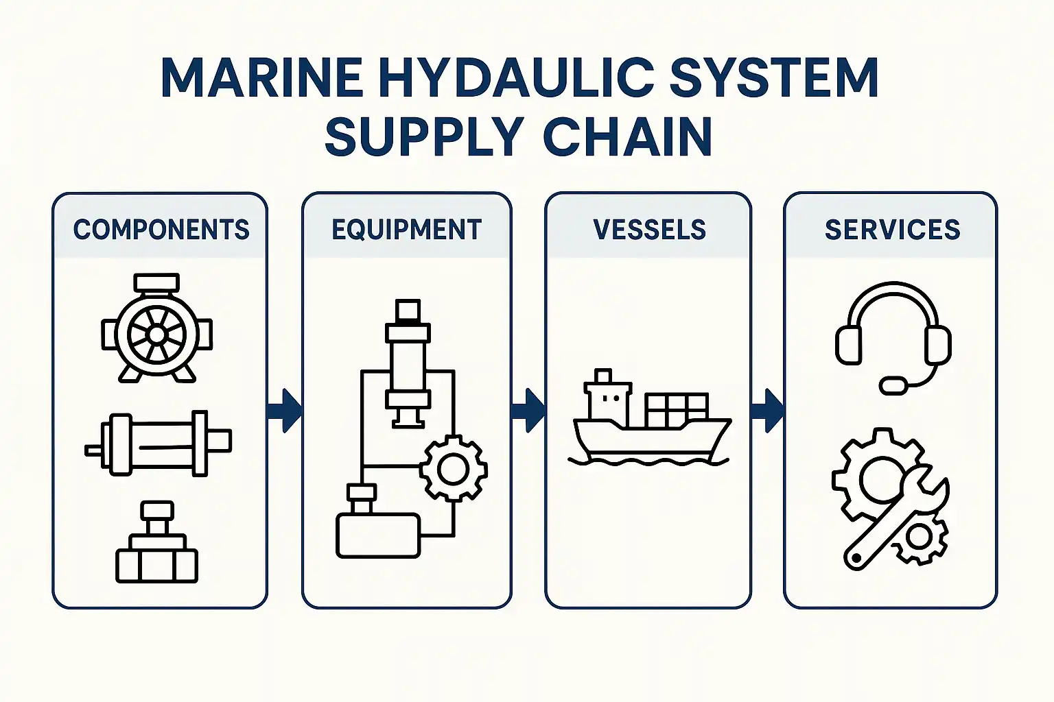 我对船用液压系统供应链的整体流程不太清楚,尤其想知道从原材料采购到最终交付涉及哪些关键环节?