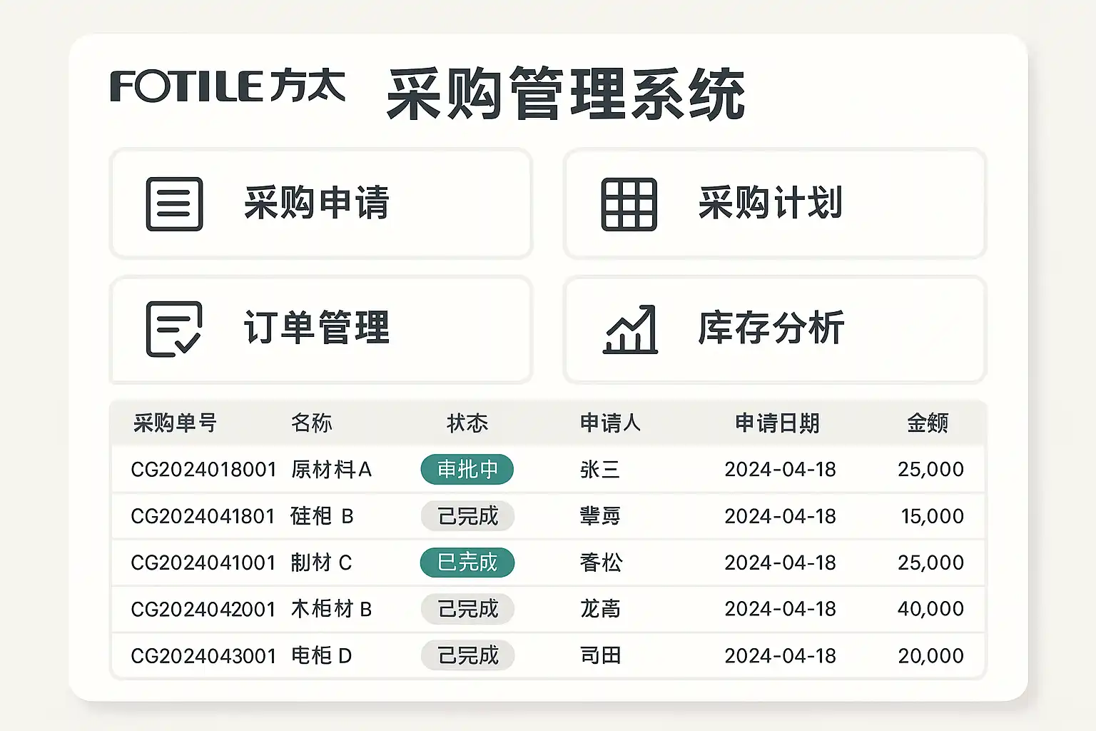 方太采购管理系统提供模块化解决方案,支持按需选择功能,灵活适配中小企业需求。