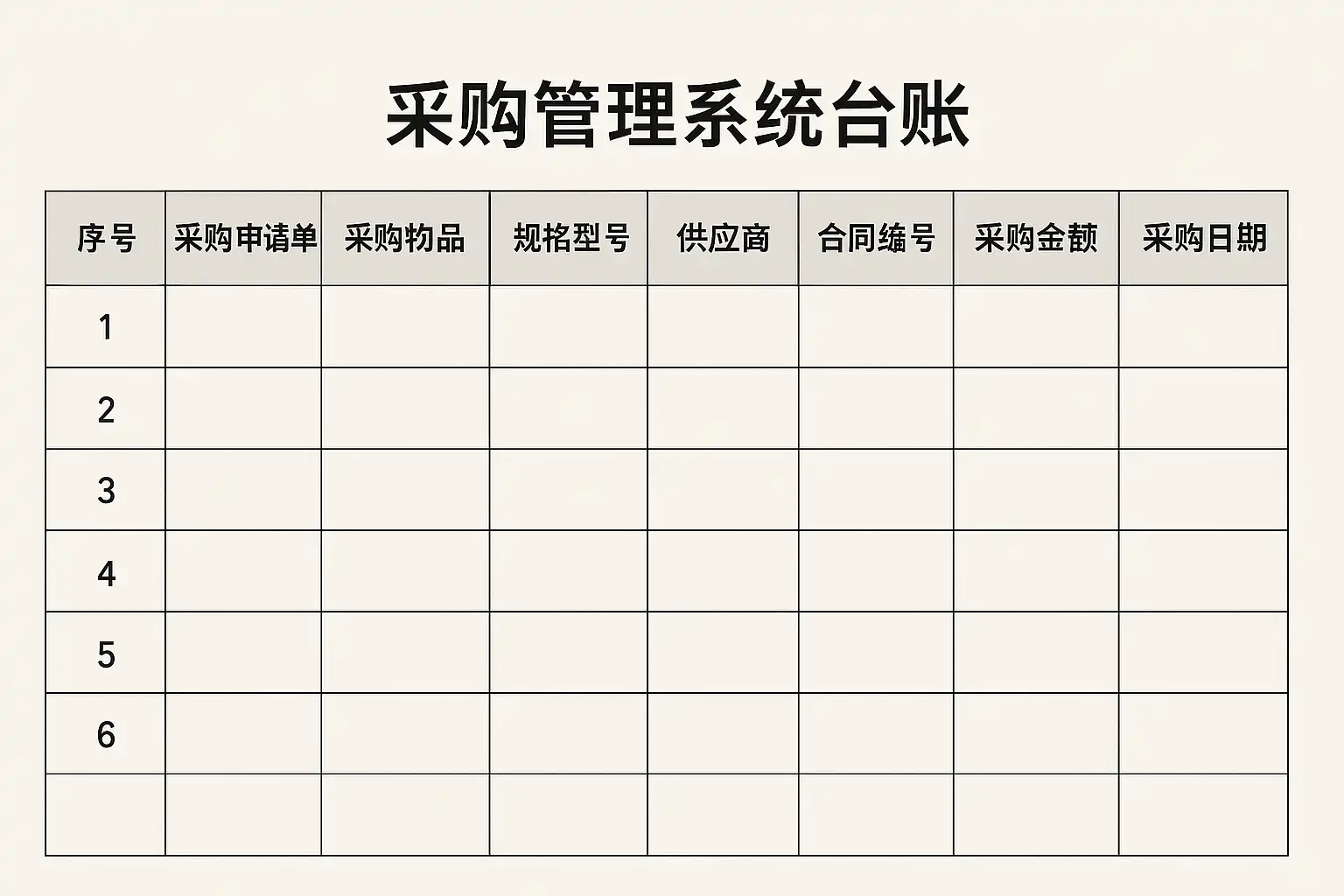 这些要素确保采购台账信息完整,方便后续查询和数据分析。