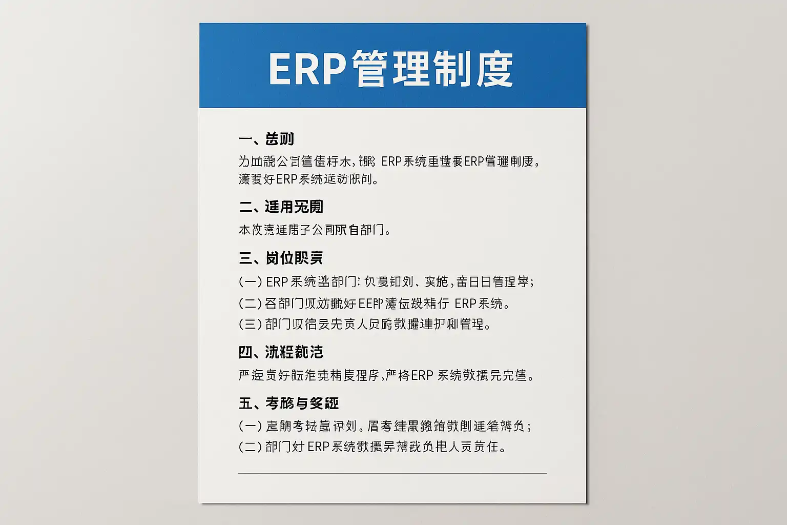 ERP(企业资源计划)管理制度是指企业为保证ERP系统高效运行、数据流畅、安全合规而制定的一系列流程、规范和管理措施。其核心价值在于: