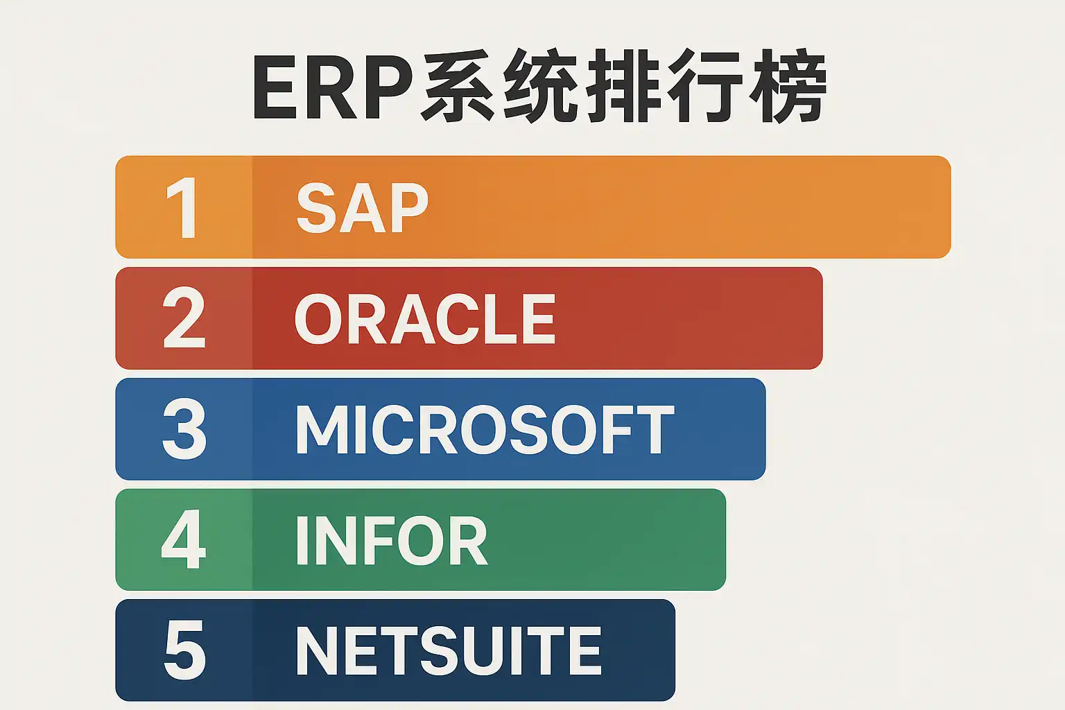 | 1 | SAP S/4HANA | 大中型、跨国企业 | 国际领先、功能全面、支持多语言多币种 |