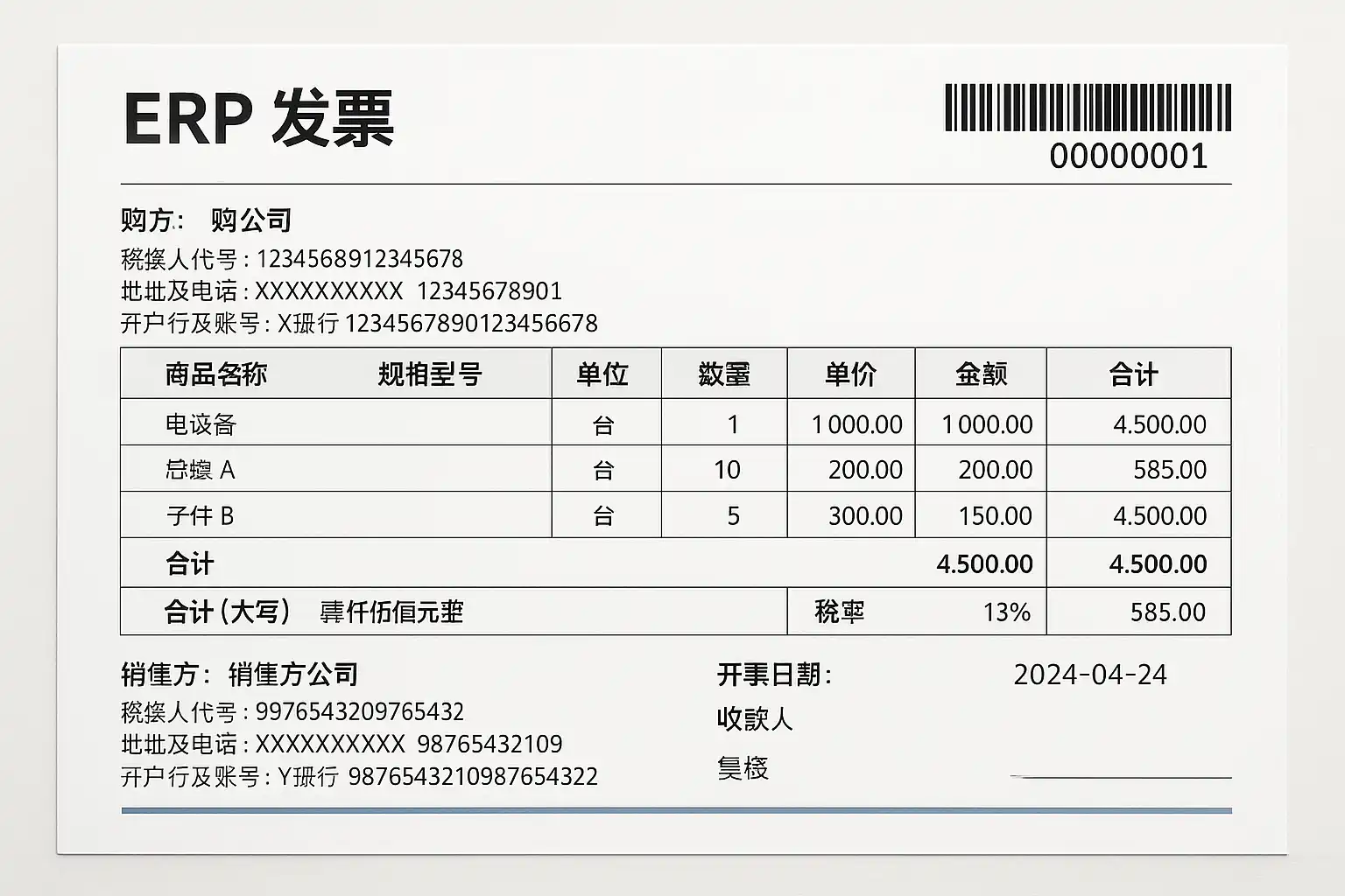 - 流程自动化: 业务系统与ERP无缝集成,销售订单生成后自动同步发票申请,减少人工录入。