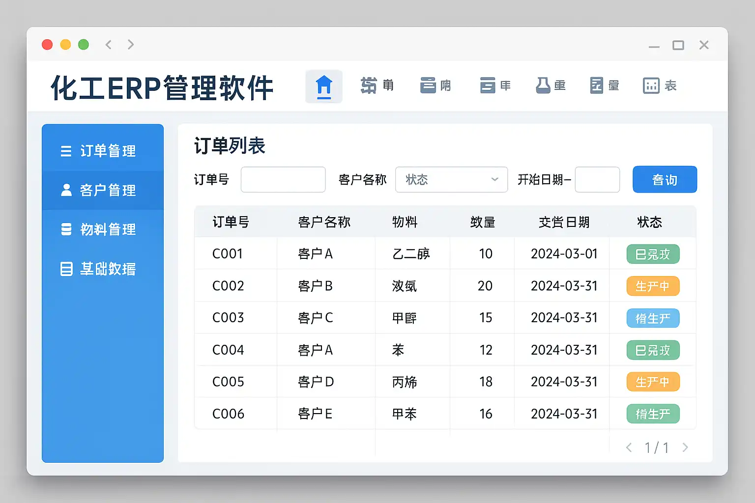 化工行业由于原材料种类繁多、生产过程复杂、质量与安全管控严格,对企业信息化管理系统提出了更高要求。ERP(Enterprise Resource Planning,企业资源计划)系统通过集成企业生产、供应链、销售、财务等各个业务环节,帮助化工企业实现以下价值: